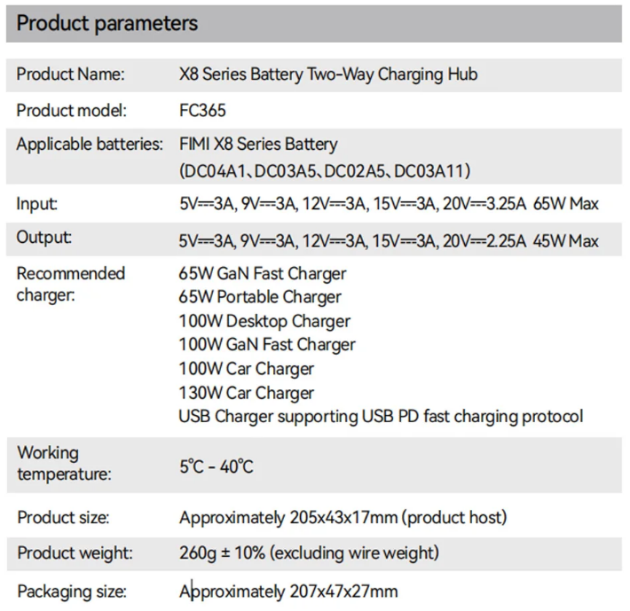 1. Може да зарежда трите батерии на дрона FIMI последователно, а също така служи като мобилен източник на захранване за зареждане на устройства като дистанционни управления или мобилни телефони, което го прави удобен за носене.